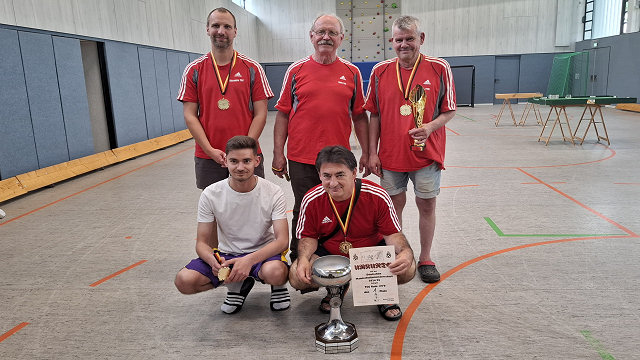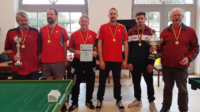 'Subbuteo muss Spaß machen,sonst macht es keinen Spaß', Wer lesen kann, ist klar im Vorteil. Das galt ganz sicher für die Besucher der Frankfurter Buchmesse. Angesichts der gleichzeitigen Konkurrenzveranstaltung in der Sporthalle der Schwalbacher Albert-Einstein-Gymnasiums waren beim DSTFB-Pokal 2023 aber auch andere Fähigkeiten gefragt. Details, Bilder und Tore Weitere Meldungen aus 2022/23DMM geht wieder nach SchwalbachDeutsche Mannschaftsmeisterschaft 2022/23Häuslingen, 17./18. Juni 2023Erneute Sieger: BSC Schwalbach