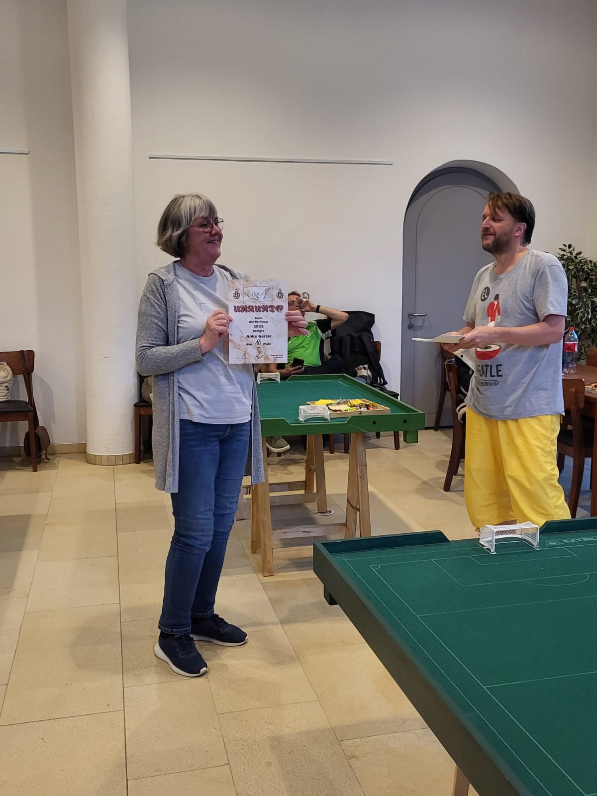 Schnippend zum neuen HobbyMein erstes Subbuto-TurnierRain am Lech, 18./19.Oktober 2025Anke Gersie und ihre erste Siegerehrung bei einem DSTFB-Wettbewerb Erstmals bei einem Subbuteo-Turnier dabei. Viele haben Respekt vor diesem Schritt. Anke Gersie hat ihn gewagt. Und wie es einem dabei ergehen kann, hat sie festgehalten in ihrem Erfahrungsbericht Weitere Meldungen aus 2024/25TSG Rain 1970 holt sich souverän den TitelDeutsche Mannschaftsmeisterschaft 2024/25Kamen-Methler, 15. Juni 2025