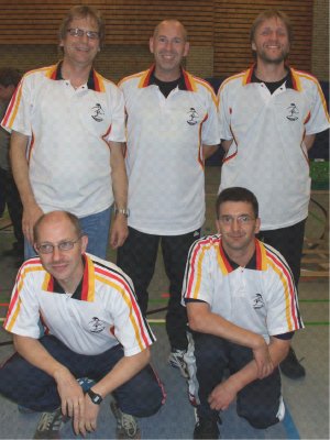 Im Kreise der Veteranen-Nationalmannschaft 2010: (stehend v.l.) Dieter Sauerwein, Frank Hagenkötter, Marcus Tilgner, (hockend v.l.) Rainer Vogt und Thomas Vulpes
